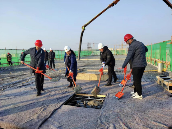 李志萍首先来到c9#学生宿舍楼建设项目施工现场,了解项目建设情况,并与郑州一建集团有限公司、清鸿工程咨询有限公司等项目参建单位共同挥锹,铲下c9#学生宿舍项目主体结构封顶的第一罐混凝土。随后李志萍一行到智能制造与环境工程实训中心建设项目详细查看项目建设情况。