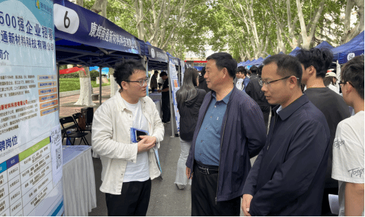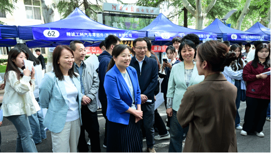 校领导带队深入双选会现场,开展访企拓岗,与企业负责人交流行业动态、岗位需求,听取人才培养建议;同时与求职学生亲切交谈,鼓励大家把握机会,实现高质量就业。