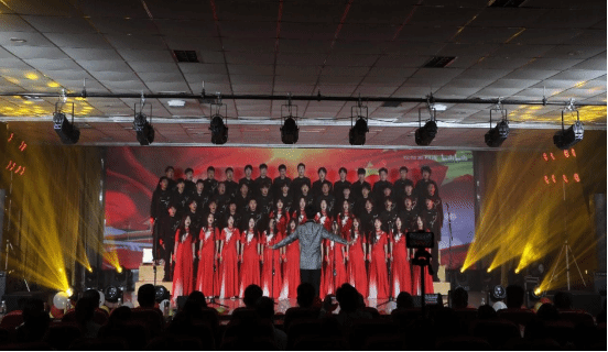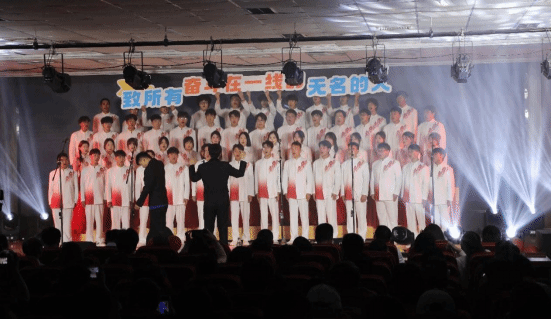 比赛现场,气氛热烈非凡。各参赛队伍依次登台表演,队员们身着精心准备的服装,风格与曲目主题紧密呼应,以饱满的精神状态、整体的队列和洪亮的歌声展现团队风采。信息工程学院以《共青团员之歌》展现青春信仰,生动诠释共青团员的责任担当;土木工程学院选取经典红歌《南泥湾》,学生手持锄头、箩筐等道具,结合民谣风舞蹈与多声部合唱,再现革命年代的奋斗豪情。嘹亮的歌声与舞蹈、朗诵、情景演绎等艺术形式有机结合,通过精心设计的舞台编排,生动诠释了五四精神的内涵,既传承了经典,又展现了新时代青年积极向上的精神风貌。