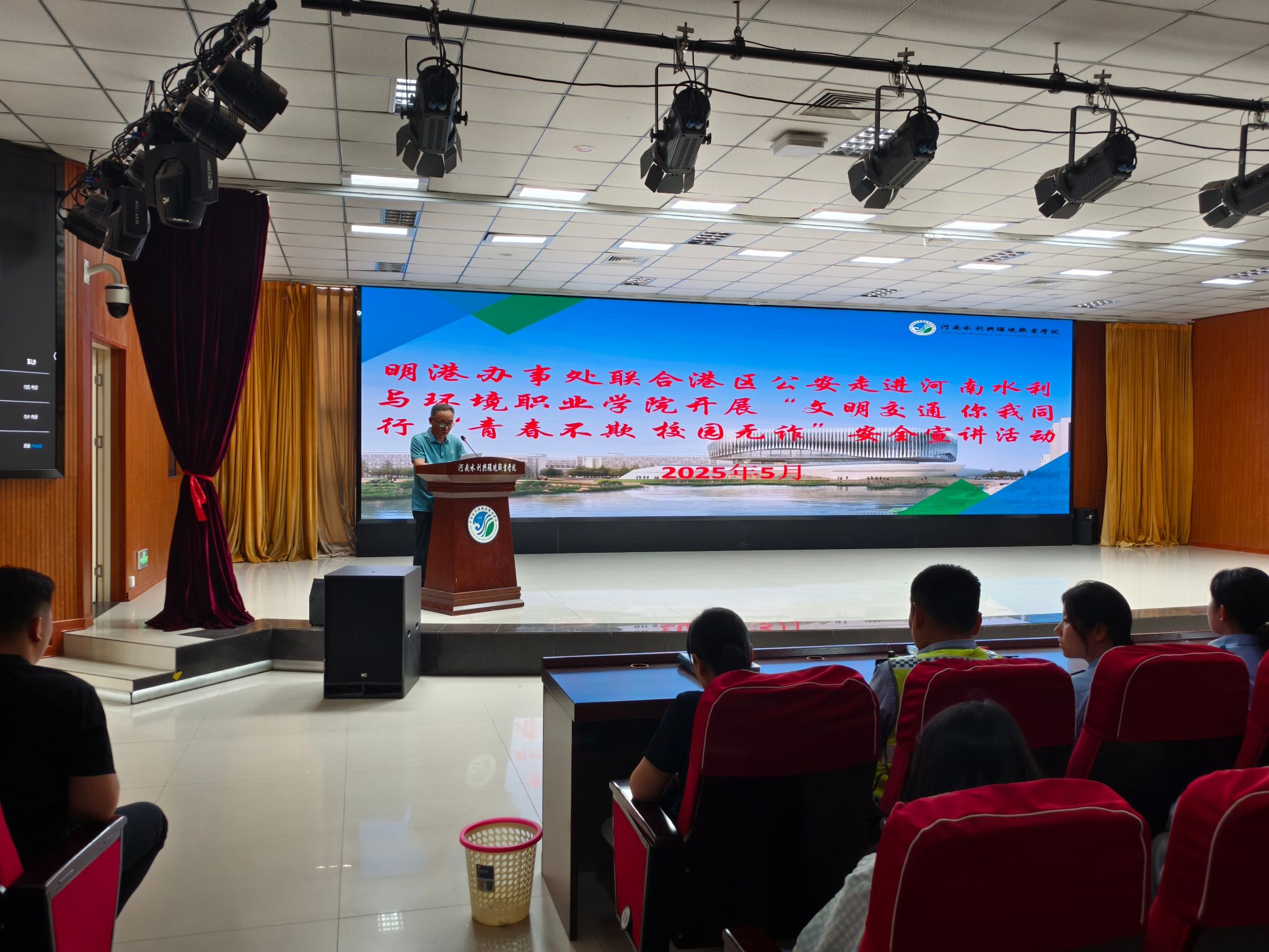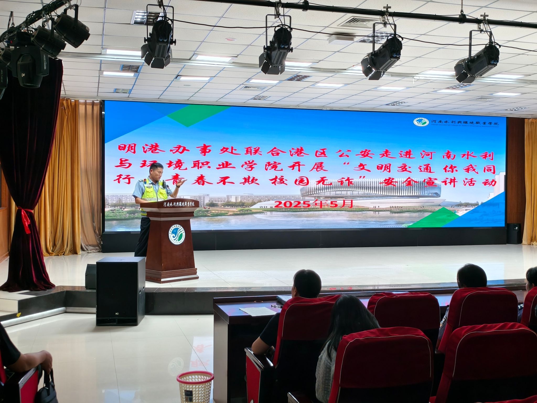 5月27日下午,由校党委安全工作部组织的“文明交通,你我同行”“青春不欺,校园无诈”安全宣传活动在航空港校区德礼讲堂一楼举行。活动由党委安全工作部部长汪志华主持,明港办事处党工委副书记、纪工委书记王宁,航空港公安分局交通管理大队民警李春波、反诈大队办公室主任刘涵婧,我校团委负责人及各学院师生代表共同参与。
