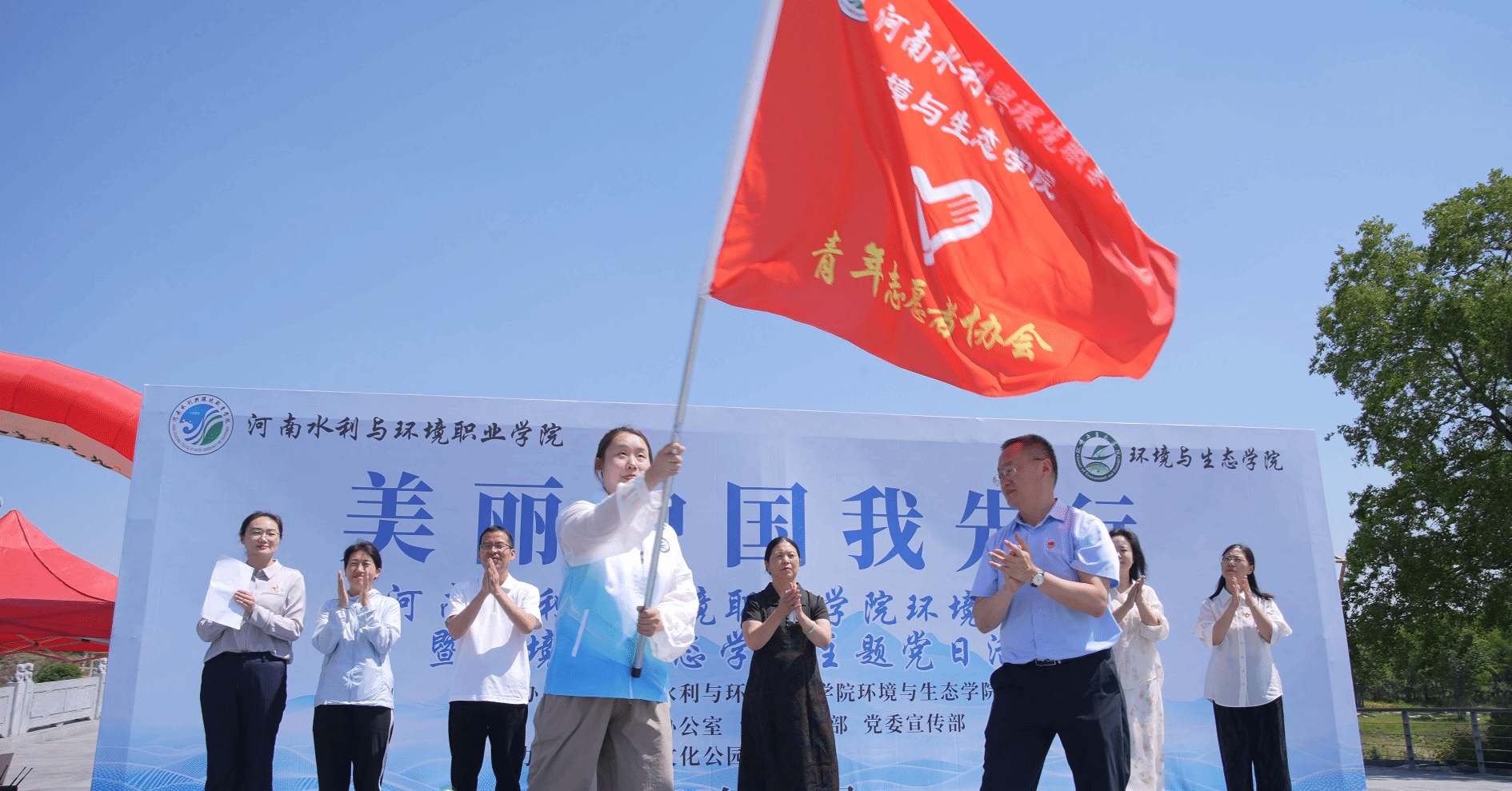 随后,王玉振向环保志愿服务队授旗。旗帜上“青年志愿者协会”字样熠熠生辉。这一授旗仪式不仅标志着以党建引领的校地环保协作共同体正式起航,更承载着青年志愿者守护绿水青山的坚定承诺 。随后,环境与生态学院党总支书记邢伟明宣布流沙启动仪式开启,活动正式拉开序幕。