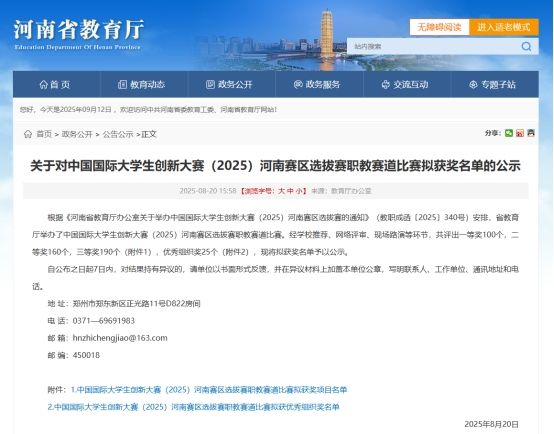 近日,中国国际大学生创新大赛(2025)河南赛区选拔赛圆满落幕。