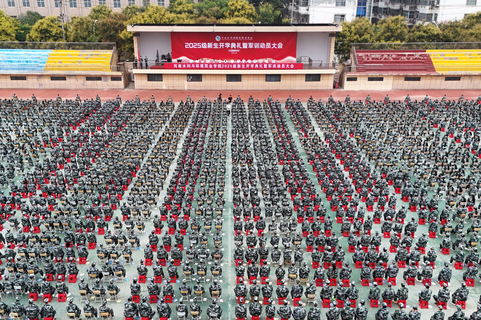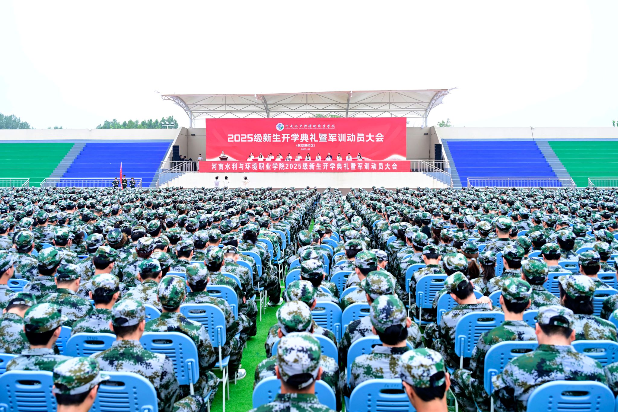 金秋九月,丹桂飘香。9月15日上午,我校2025级新生开学典礼暨军训动员大会在花园路校区、航空港校区同步举行。校领导班子成员,各相关职能部门及二级学院主要负责人、军训团承训教官、新生辅导员与全体2025级新生共同参会,副校长张竟超、包永刚分别主持两校区典礼。