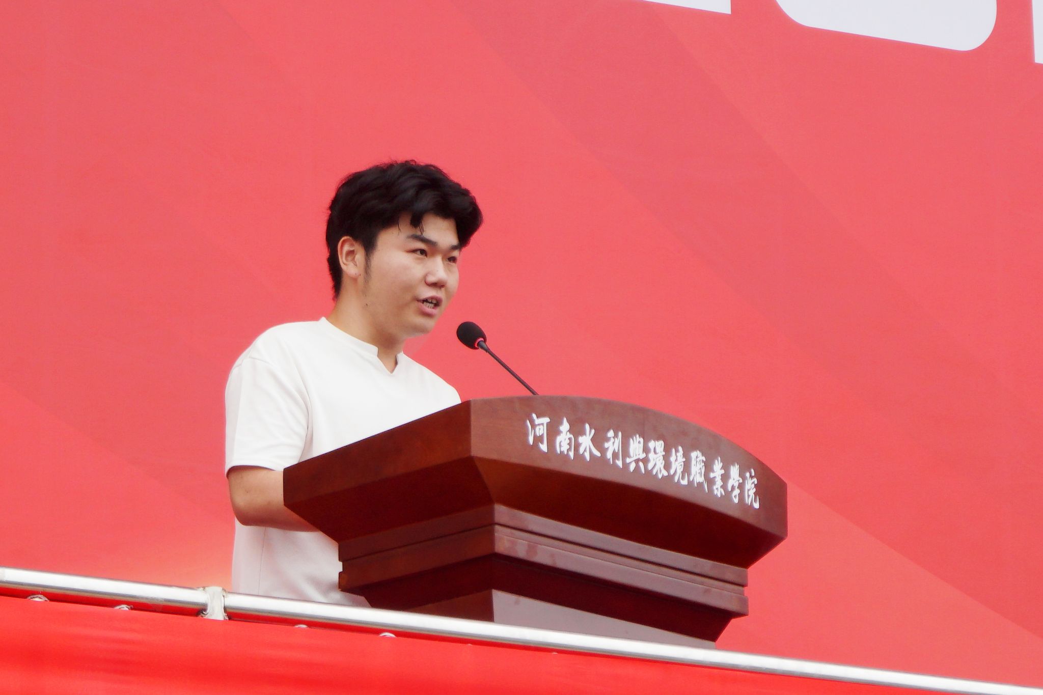 信息工程学院24企信2班的田广雨、土木工程学院24造价2班的崔瑞星同学作为老生代表发言。