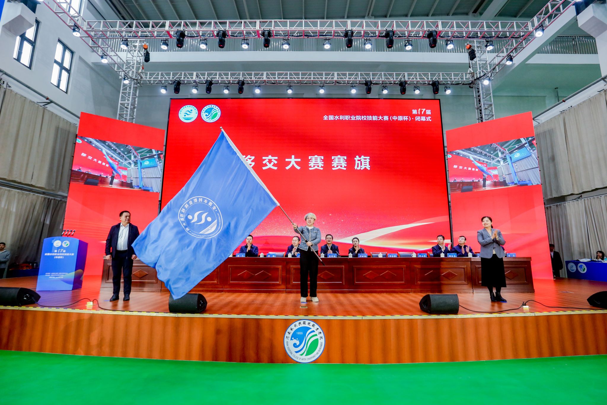 闭幕式上举行了庄重的赛旗交接仪式。李志萍将大赛会旗郑重移交至下届承办单位——江西水利职业学院院长刘孟桦手中。刘孟桦代表下届大赛承办单位发言,表示将全力做好筹备工作,传承大赛精神,打造更高水平的技能盛会。