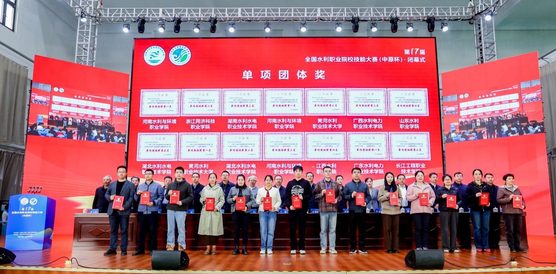 10月21日至23日,由水利部人事司、中国水利教育协会主办,我校承办的第十七届全国水利职业院校技能大赛(中原杯)圆满落下帷幕。我校派出的5支参赛团队参加了高职组5个单项比赛,荣获综合团体第一名的优异成绩。单项赛中,智能节水系统设计与安装、水利工程bim建模及应用、工程测量三个赛项斩获单项团体第一名;水利工程造价赛项荣获单项团体第三名。个人奖项中,参赛的17名选手共获单项个人一等奖13项、二等奖3项、三等奖1项。