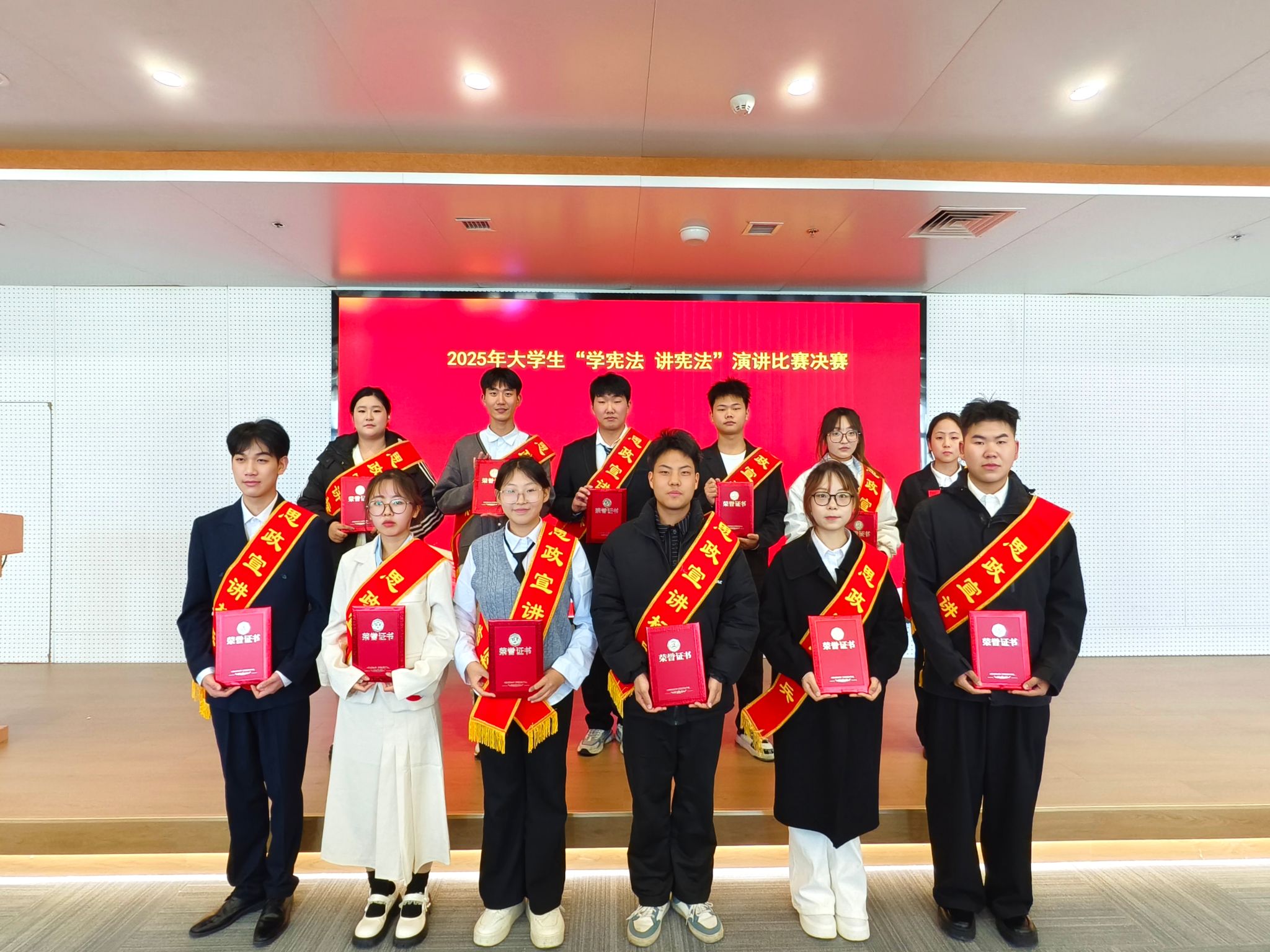 为深入学习贯彻习近平法治思想,推动宪法学习教育走深走实,引导青年学生厚植法治信仰、强化责任担当,11月25日,我校2025年大学生“学宪法 讲宪法”演讲比赛决赛在航空港校区图书馆智慧讲堂隆重举行。马克思主义学院领导班子成员、全体思政课教师及参赛选手齐聚现场,共赴这场法治与青春的思想盛宴。