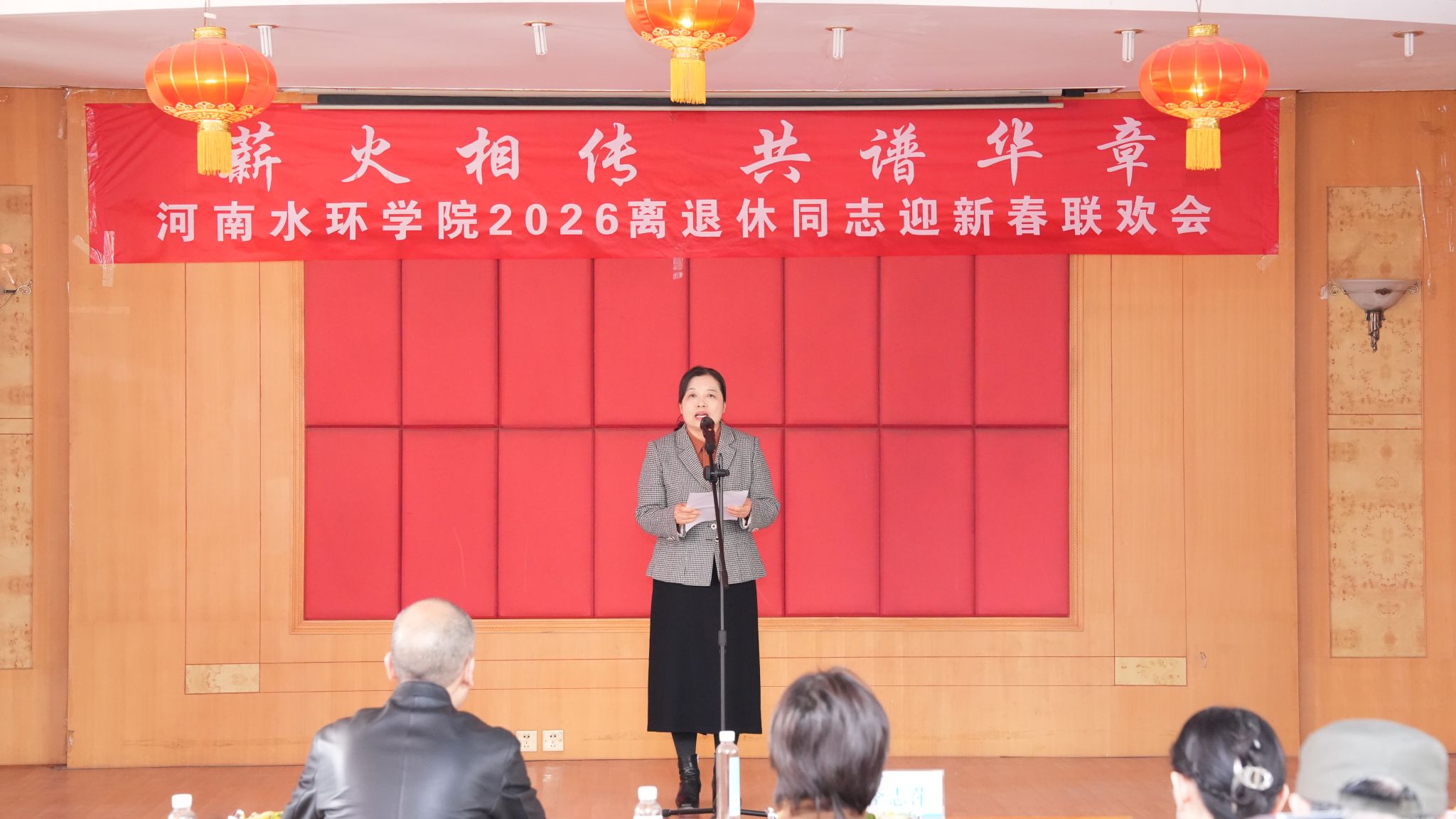1月9日,我校花园路校区暖意融融、欢声盈耳,“薪火相传 共谱华章”2026年离退休同志迎新春联欢会在此温馨启幕。校长李志萍出席活动并讲话,校领导班子成员、相关职能部门负责人与离退休老同志欢聚一堂,共贺新春、共话发展,在祥和喜庆的氛围中凝聚奋进力量。
