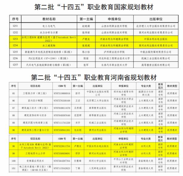 本次申报,学校高度重视、精心组织与遴选,共向省教育厅及全国水利职业教育教学指导委员会择优推荐11本教材。最终,我校3本教材入选省级规划教材,2本教材入选国家级规划教材。