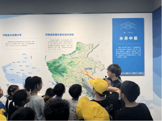 随后,研学团队依次参观了水利文化馆与校史馆。水利文化馆以"水利蓝"为主题色调,通过全息投影、互动装置等技术手段,呈现了水文化发展脉络。特别是在"大国重器"互动体验区,小朋友们通过体验大型水利枢纽工程的模型,直观理解了"节水优先、空间均衡"的新时代治水理念。校史馆则通过"序厅、历史厅、发展厅、荣誉未来厅"四大展区,借助建校初期教案、历史教学设备等珍贵文物,完整展现了学校70年办学历程。馆内精心复原了不同时期的校名变更,生动诠释了学校在传承中创新、在前行中升华的发展进程。