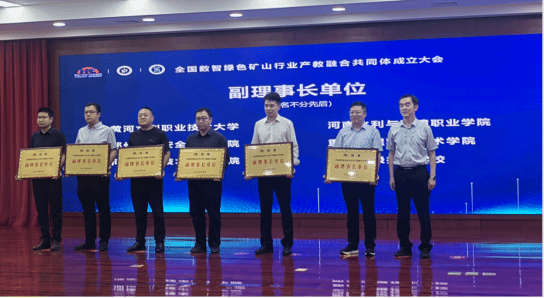 大会现场举行了全国数智绿色矿山行业产教融合共同体成立仪式与授牌仪式。该共同体旨在整合各方资源优势,联合开发优质教学资源,培育契合行业需求的高素质专业人才,并积极推进高水平创新成果的研发与转化应用,构建实体化运行机制,深化产学研用协同合作,为推动我国矿山行业现代化进程、实现产业转型升级提供强劲动力,全力助推矿山行业向数字化、智能化、绿色化方向发展。我校作为共同体副理事长单位,将与各成员高校、行业企业开展紧密合作,深化校企对接机制,在人才培养、技术创新、产业优化升级等方面持续深耕,协同培育大批高技能专业人才,实现校企高效对接,深化产教融合,助力行业企业高质量发展。