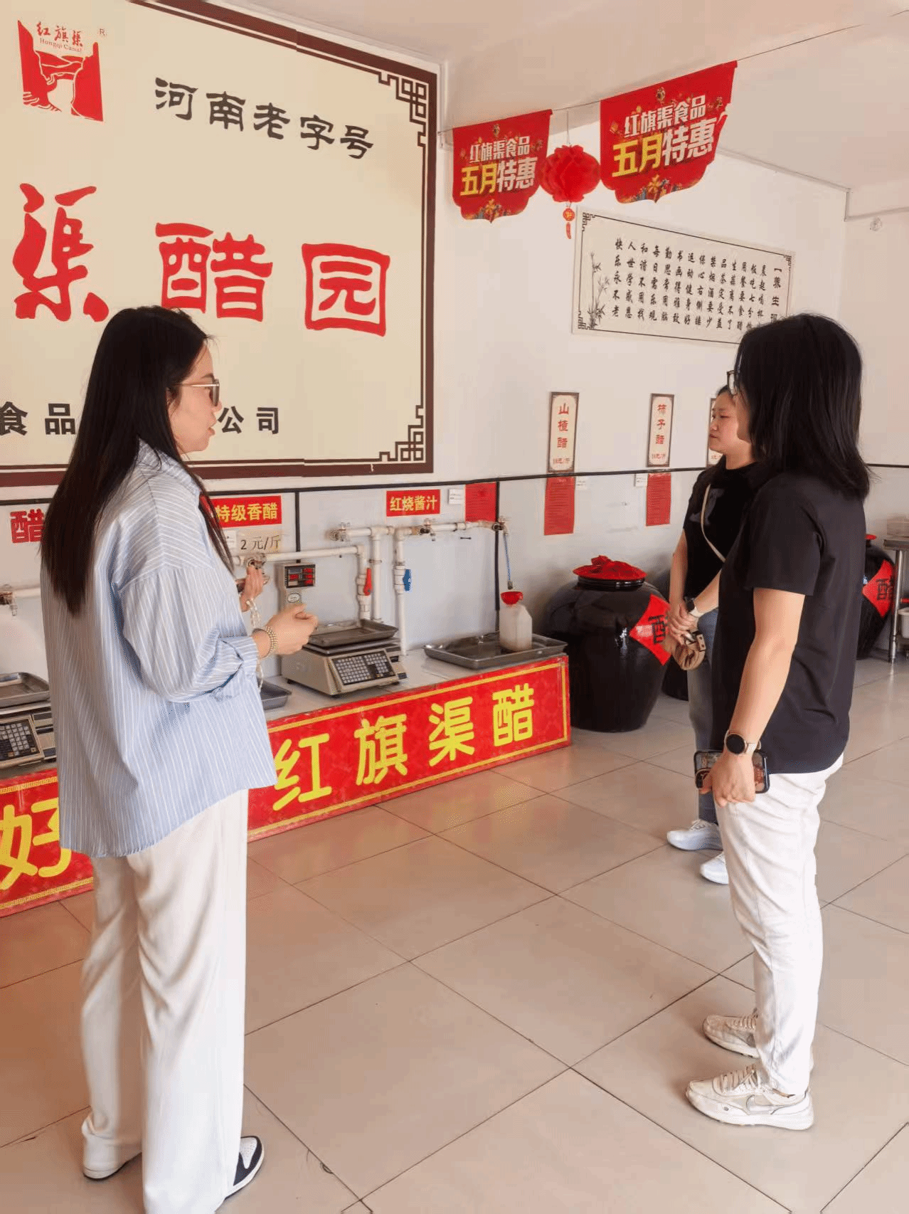在林州百年手工酿醋工坊,非遗传承人指导师生近距离观摩传统酿醋“蒸、酵、熏、淋、陈”五道古法工艺。参与翻醅工序体验后,学生党员深有感触:“每滴醋历经365天自然酝酿,正如做人做事需坚守与沉淀。”师生还围绕非遗技艺的数字化保护路径、品牌创新策略等议题,与企业负责人展开深入研讨交流,积极为传统工艺创新发展建言献策,探索将数字技术融入非遗传承的可行方案。