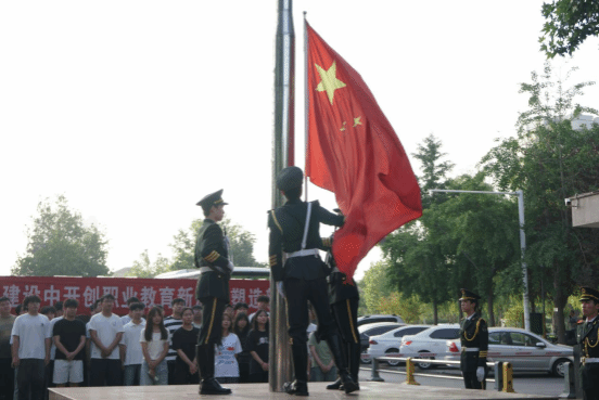 在庄严的氛围中,伴随着雄壮的《义勇军进行曲》,五星红旗冉冉升起。全体师生肃立行礼,高唱国歌,展现了新时代青年的精神风貌。