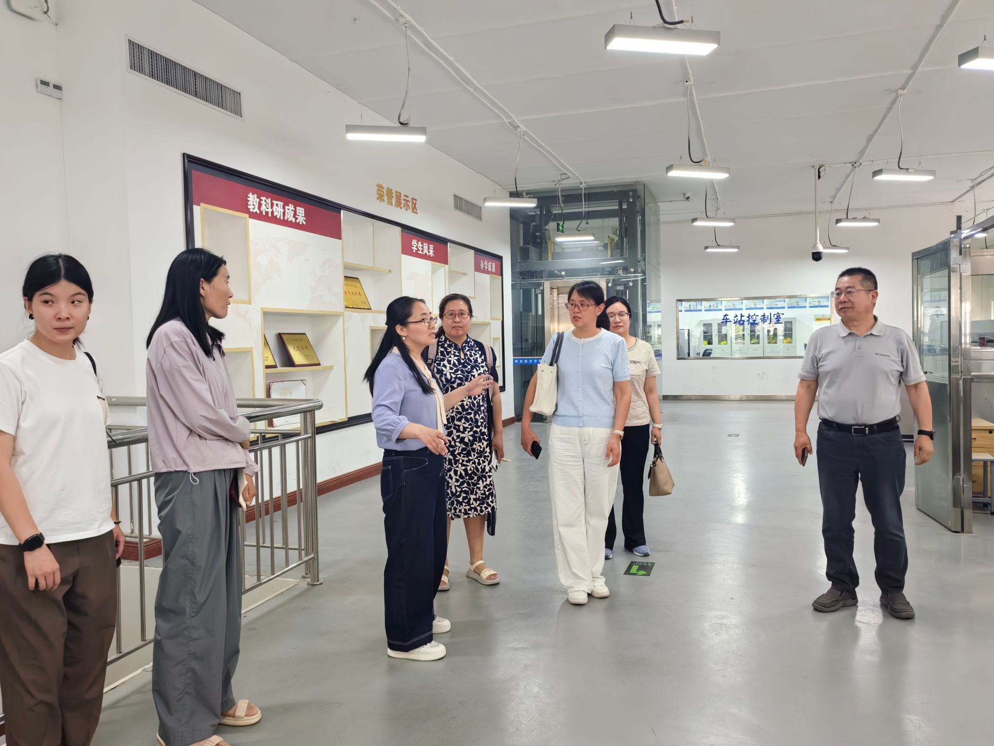 会后,调研团队实地参观了地铁车辆控制室、城轨车站机电实训沙盘系统、自动检票机等教学设备。双方就设备智能化升级、教学场景仿真设计、安全规范实操训练等内容展开研讨,为学院的城轨实训室功能优化与教学创新提供了新思路。