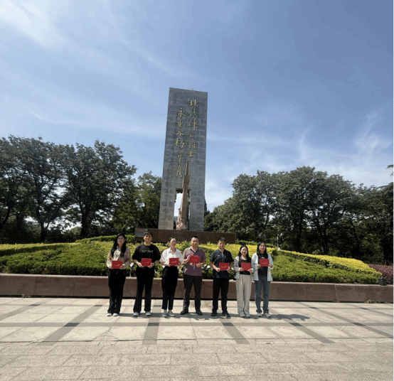 在碧沙岗公园北伐阵亡将士墓地,党员教师们怀着崇敬之情向纪念碑敬献鲜花、鞠躬默哀,在爱国主义教育基地感悟先烈们为民族复兴英勇献身的崇高精神。活动现场,学院为党员教师颁发“政治生日”贺卡,以特殊形式强化身份意识,凝聚奋进动能。