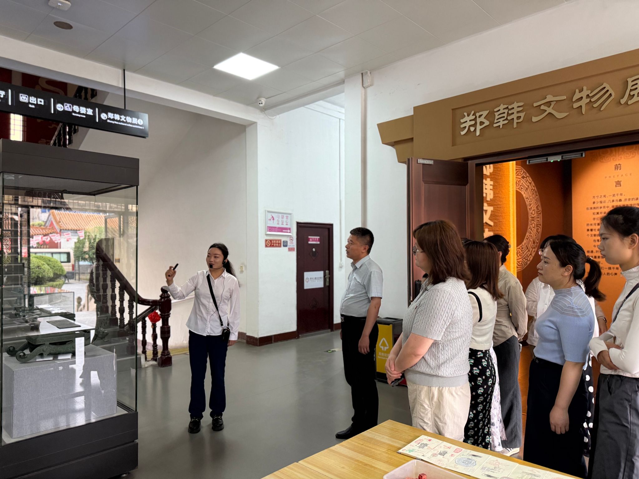 在专业讲解员的带领下,党员同志们依次参观“郑韩文化”“华夏之根””馆藏瓷器”等特色展厅。在“郑韩文化”展区,九鼎八簋等青铜器以庄重的形制与精美的纹饰,再现2700年前郑韩古国的辉煌文明;“华夏之根”展厅内,碳化枣核、彩陶残片等文物,娓娓诉说着5000年黄帝文化的厚重历史,让大家对中华民族起源有了更深刻的认知;“馆藏瓷器”展区中,流光溢彩的瓷器珍品尽显古代匠人的匠心独运,彰显中华传统工艺的非凡造诣。