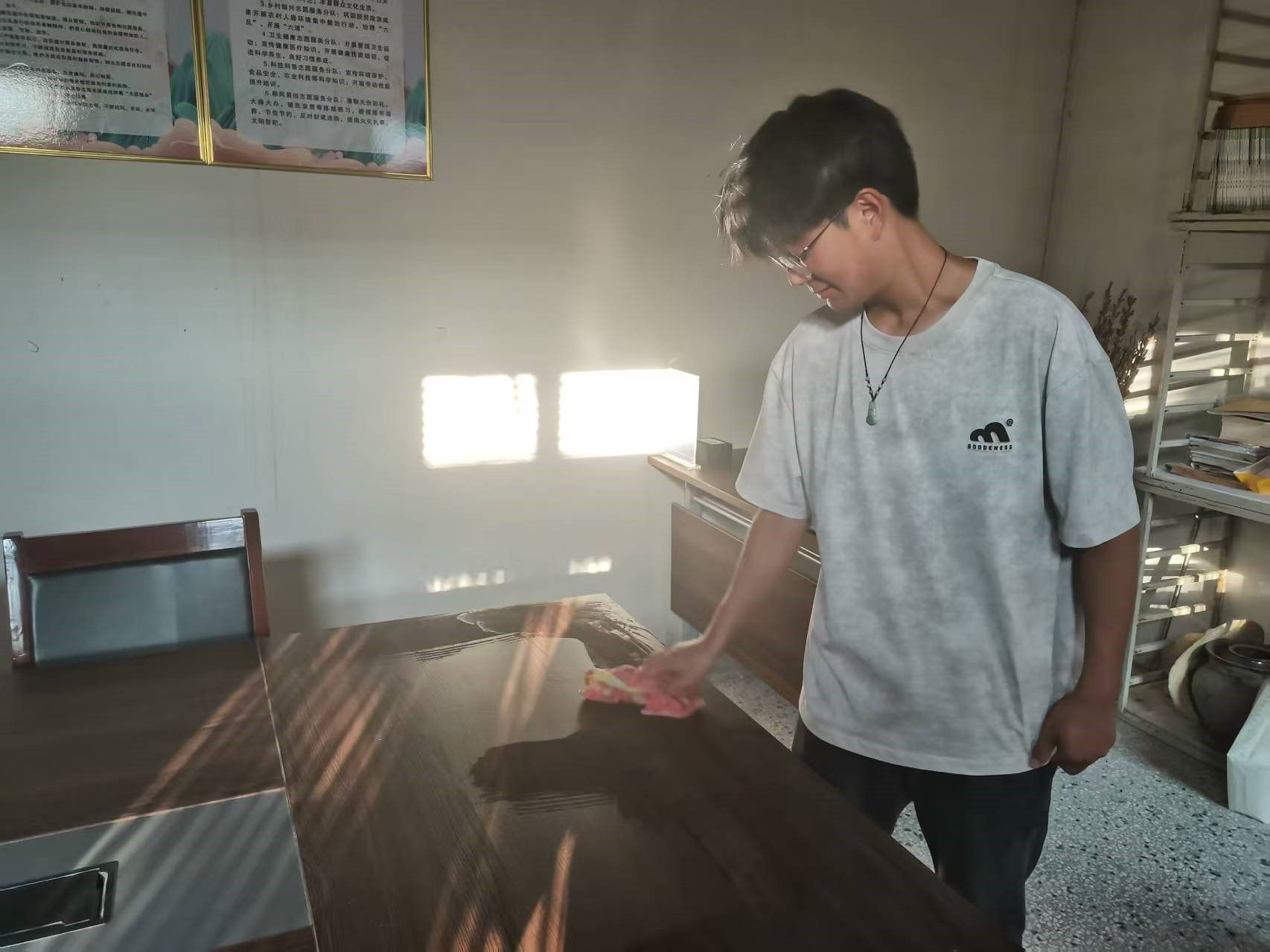 陈喆同学在暑期参加了家乡-河南省新乡市新乡县七里营镇开展的毛里塔尼亚学习中国减贫经验研修班考察活动。活动前期,他和其他大学生志愿者们一起早早投入筹备工作中,他们仔细清扫场地,逐一检查物资,反复确认流程细节,从环境整理到环节衔接,每一项都力求周全到位。汗水浸透衣衫,却挡不住他们认真的劲头。活动期间,在毛笔书法体验区、传统戏曲展示区等各个场景都能看到他们忙碌的身影。他们时而耐心引导参观路线,时而细致解答疑问。每个人都各司其职、默契配合,用高效的行动保障着活动的顺畅推进,成为现场一道充满活力的青春风景线。陈喆谈到:“在实践中,我发现乡村发展需要新鲜血液,文化传承需要创新思路,特色产业需要品牌建设,而这些恰恰是我们大学生大展拳脚的天地。我开始主动了解乡村振兴的政策支持,和同学探讨如何用所学专业助力乡村建设。这段经历也让我明白了,青年的成长从来不是逃离家乡,而是与家乡共同成长。”