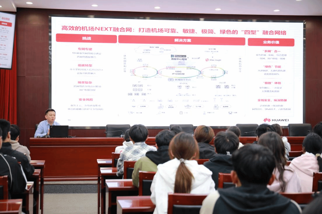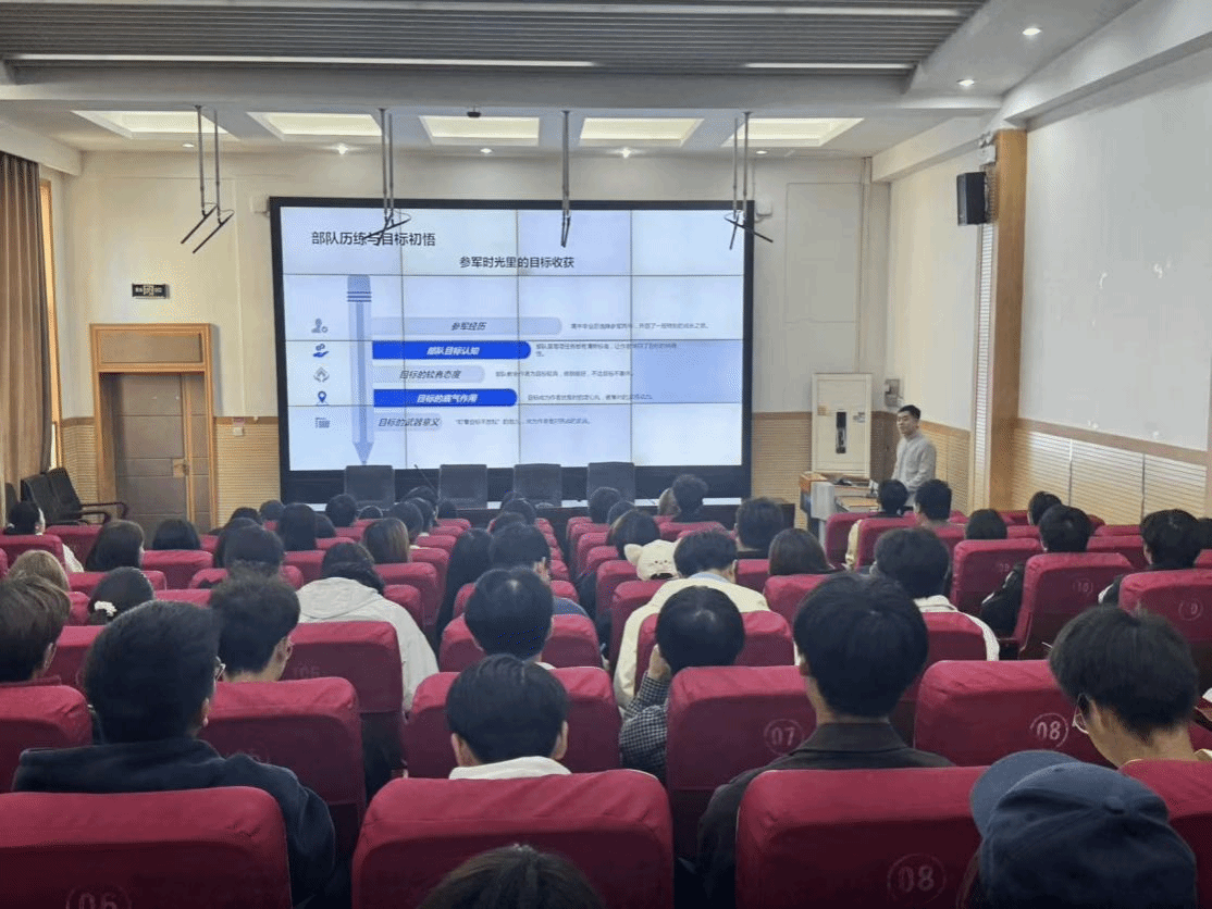 “校友讲堂”系列报告会于参观后在图书馆学术报告厅举行。华为技术有限公司经理、2011届校友李雄首先以“网络通信的未来与我们的机会——毕业生的十年回望”为题,结合自身职业发展历程,分享了行业前沿动态与个人成长感悟,为在校师生和年轻校友提供了宝贵的经验借鉴。随后2021届校友苗洪源结合自身经历,以 “军旅淬炼青春,升学续写华章” 为主题分享参军、升学感悟,为有参军入伍和专升本意向的在校生提供了极具价值的参考,为在校生规划未来发展路径提供了有益借鉴。