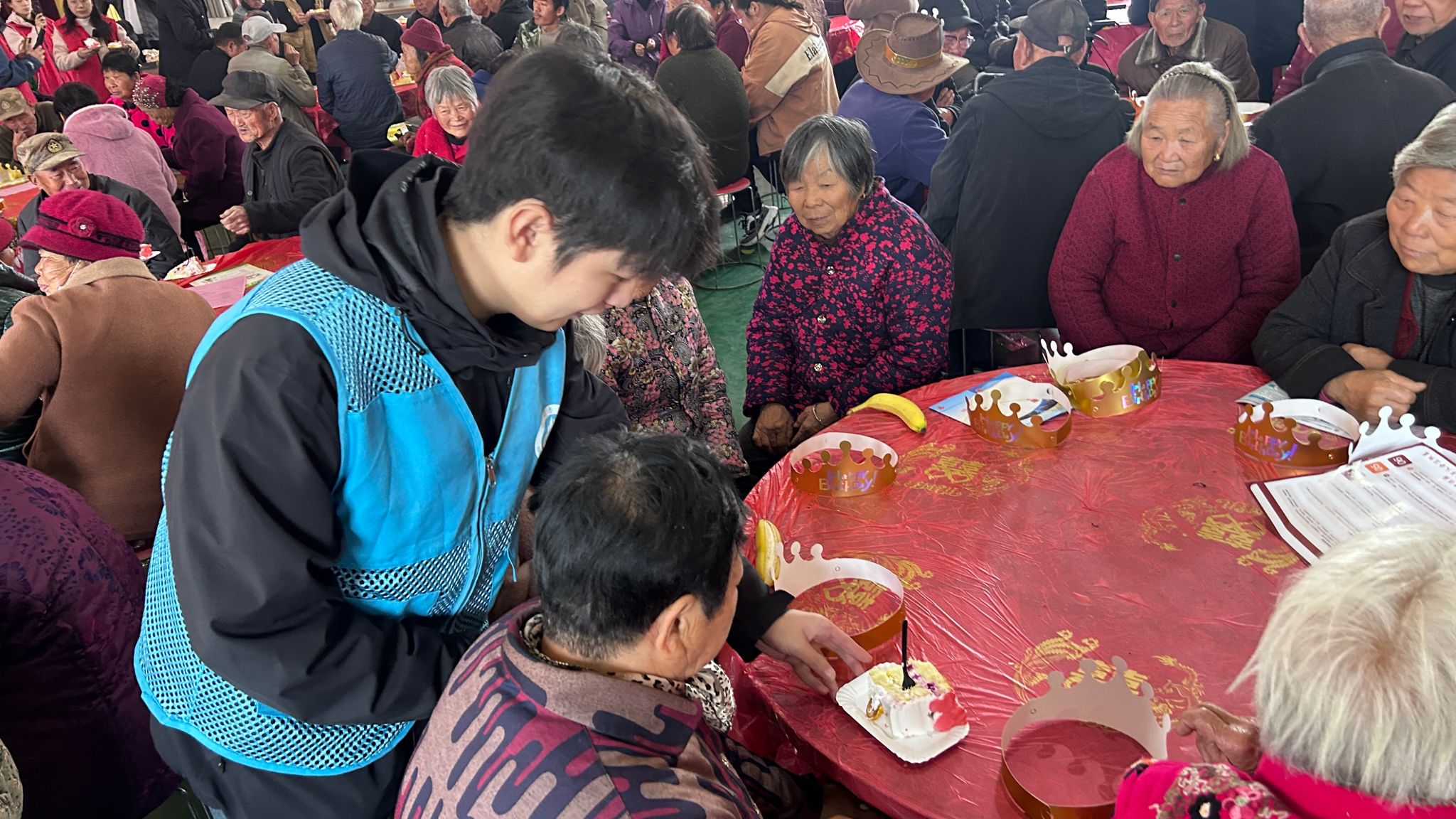午间时分,志愿者们将一份份精心定制的重阳蛋糕送到老人手中,香甜软糯的糕点承载着浓浓的敬老情意。大家围坐在一起共进午餐,倾听老人讲述往事,聊聊家长里短,寻常餐桌化作温情的“连心桥”,传递着跨越代际的温暖。下午,志愿服务队转往酒孙村开展入户关怀。志愿者们走进困难老人家中,细心帮助打扫庭院、整理物品,与老人促膝长谈,关切询问他们的身体状况和生活需求,并送上精心准备的慰问品,用实际行动诠释尊老敬老的时代内涵。
