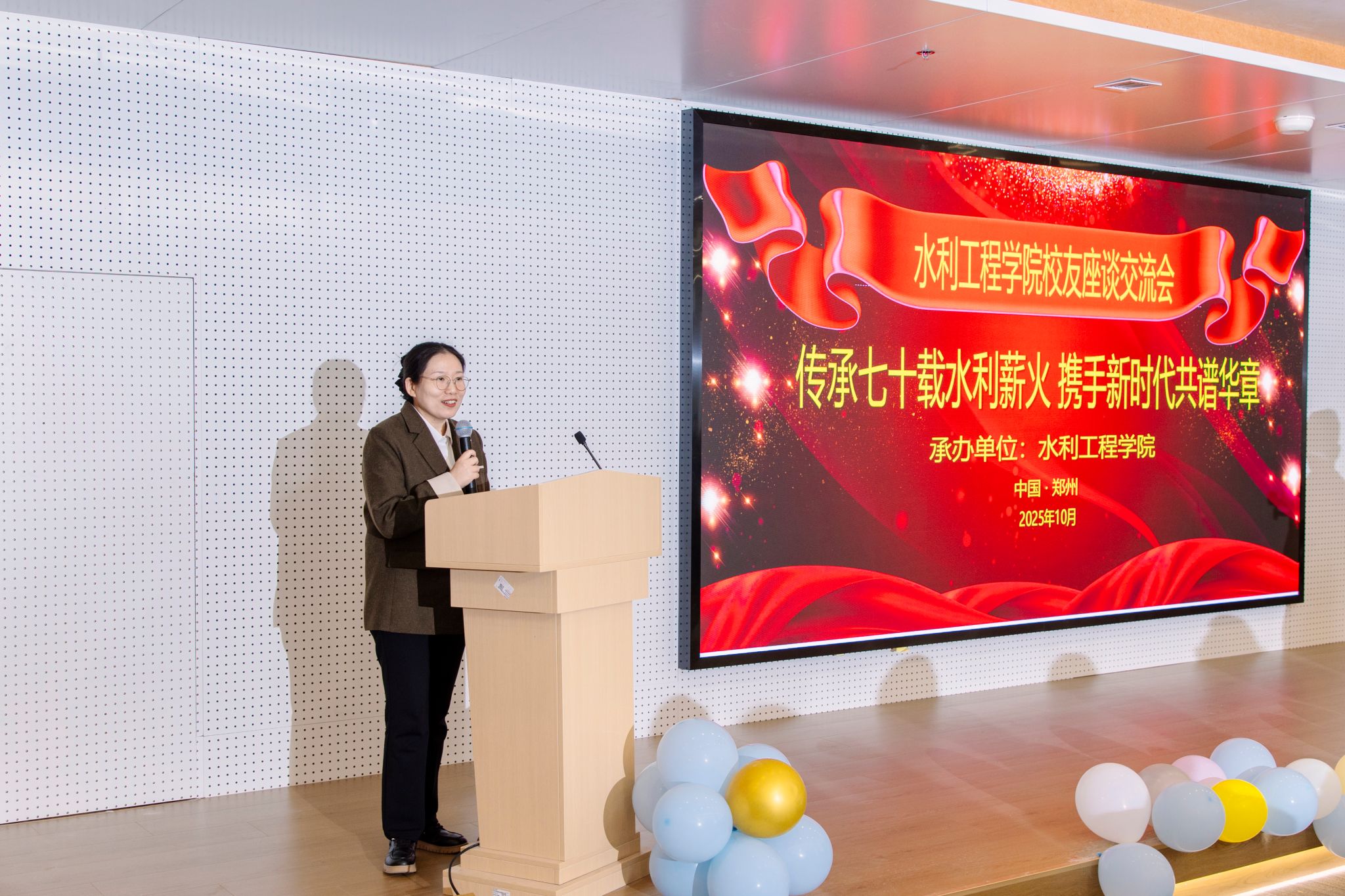 邢芳在致辞中,以“三个数字”为脉络,清晰勾勒出学院深厚的办学底蕴与扎实的育人成果:七十年扎根水利教育,为国家培育了大批栋梁之才;三十余位高级职称教师,凝聚成高水平的教学科研中坚力量;毕业生就业率连续多年稳居97%以上,印证了人才培养的过硬质量。她强调,学院正全力深化产教融合,致力实现“课堂连接水闸,实训直通一线”,并诚挚邀请广大校友携手共建产教融合共同体,为学院高质量发展注入持久动力。