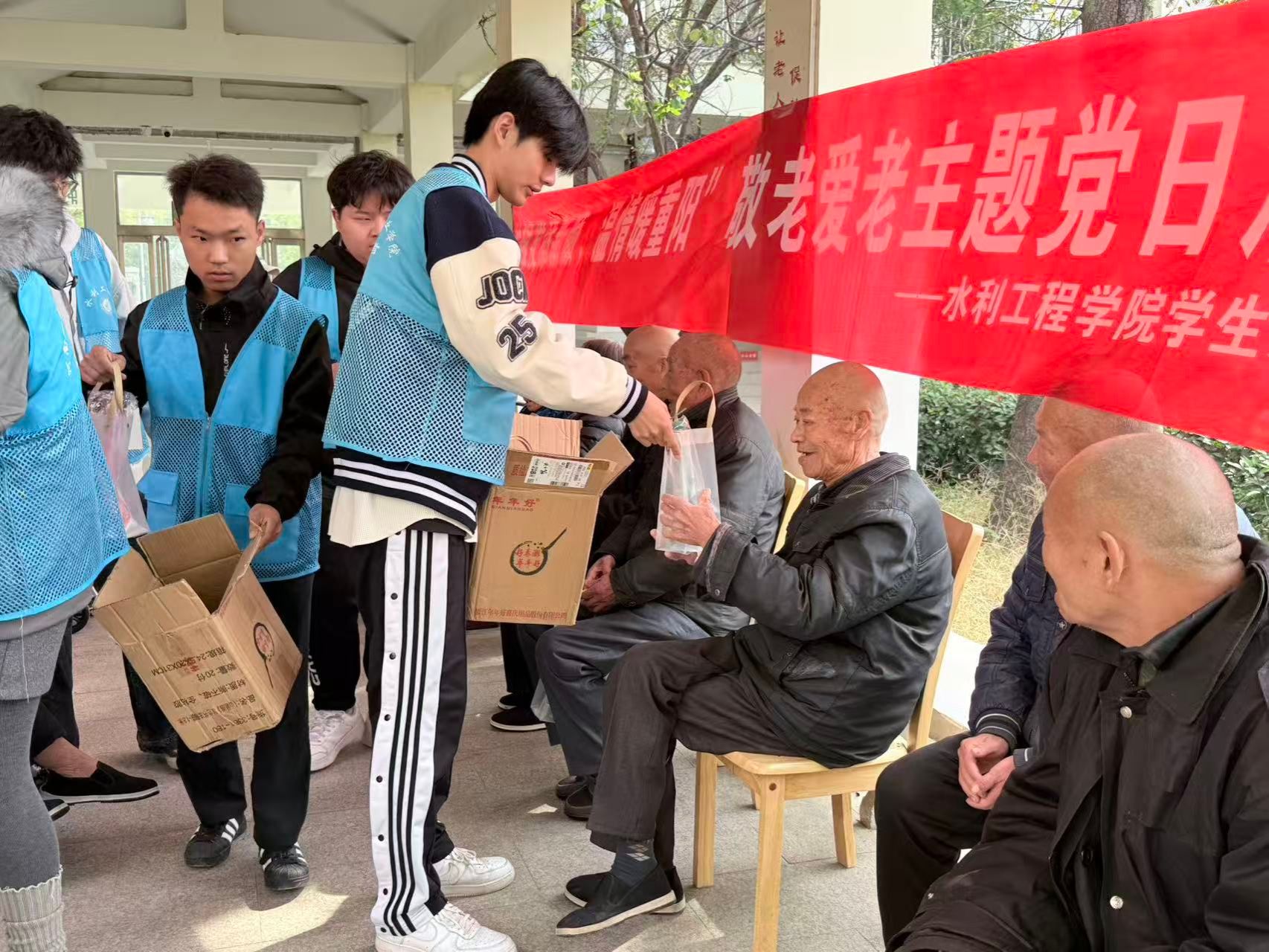 为弘扬中华民族敬老爱老的传统美德,在重阳佳节来临之际,水利工程学院24级入党积极分子精心策划并组织开展了“银发添新颜,温情暖重阳”主题活动。10月29日上午9时,活动在新郑市和庄镇敬老院温馨启幕。