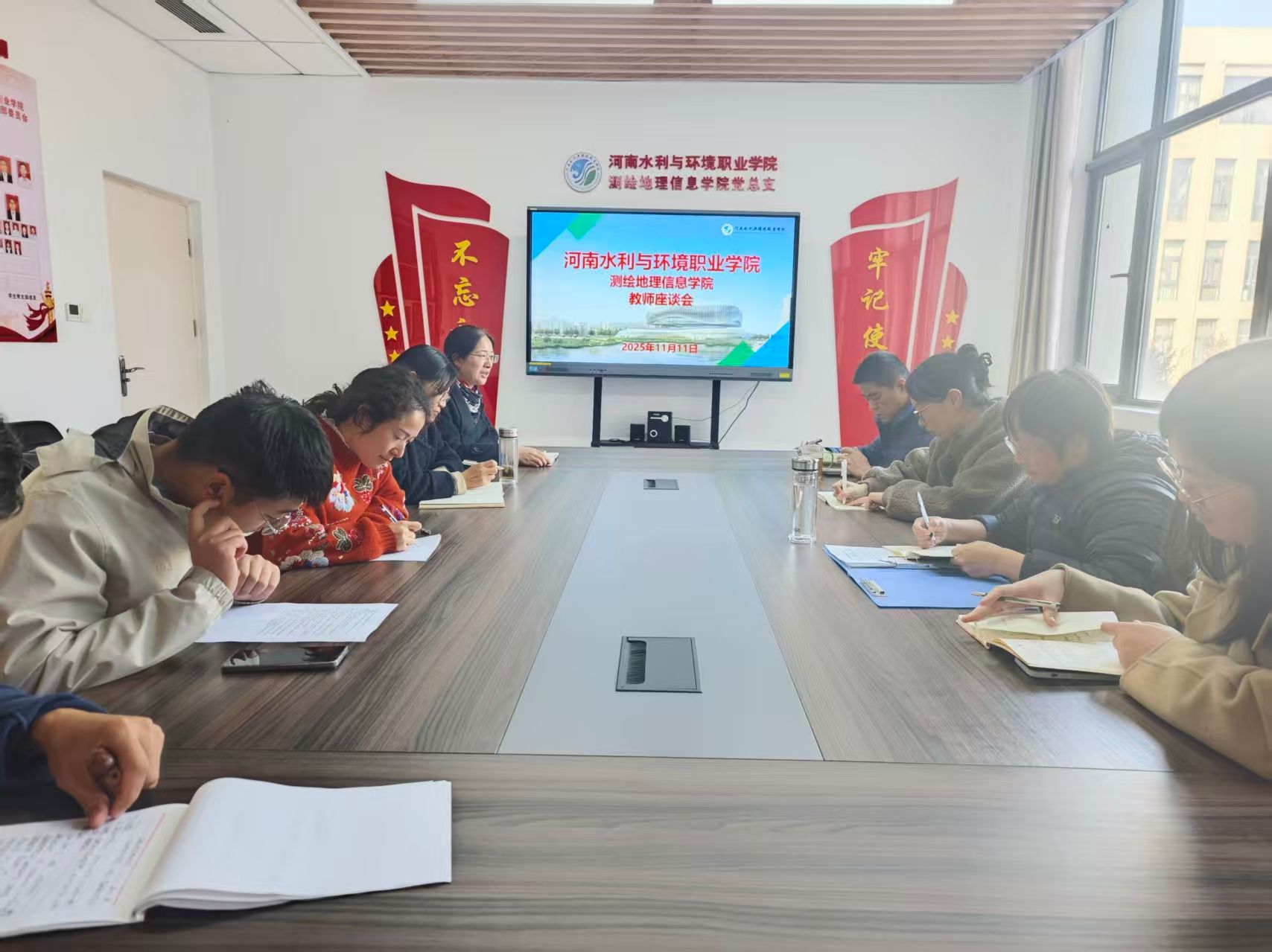 座谈环节气氛热烈、交流深入。与会教师代表结合各自岗位经历,分享了在教学、科研与管理等工作中的体会与思考,并就测绘类课程体系建设、实训条件改善、教学资源统筹、青年教师培养、科研平台共享等方面提出了多项具有建设性的意见与建议。大家一致认为,面对新形势下职业教育高质量发展的要求,学院应进一步优化教学组织方式,强化产学研协同,激发教师队伍活力,构建更加科学、高效的教学运行机制。