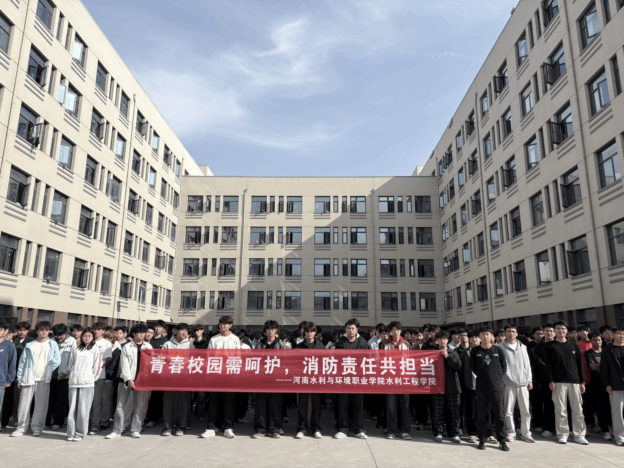 为全面贯彻“生命至上,安全第一”的理念,切实提高大学生的消防安全意识与应对突发火灾的自救互救能力,11月17日,水利工程学院在c9和c6宿舍楼下组织开展大学生消防演练活动,学院老师及25级学生共同参与此次演练。