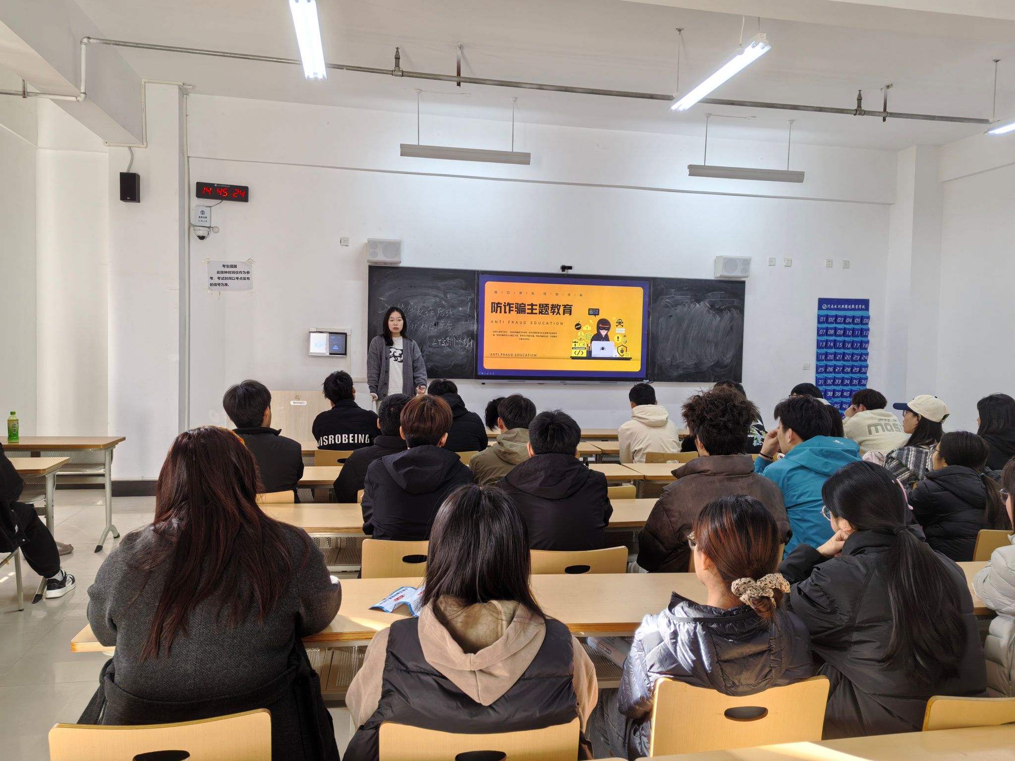 为系统检验与巩固系列宣传教育成果,25日,学院将防诈知识考核融入主题团课。考核内容全面覆盖诈骗类型识别、防范技巧及法律法规,同学们踊跃参与,认真作答,现场气氛热烈。系统即时生成成绩与解析后,班长们针对共性错题进行集中讲解,确保了知识盲点得以及时扫清,真正实现了“以考促学、以学促防”的闭环目标。