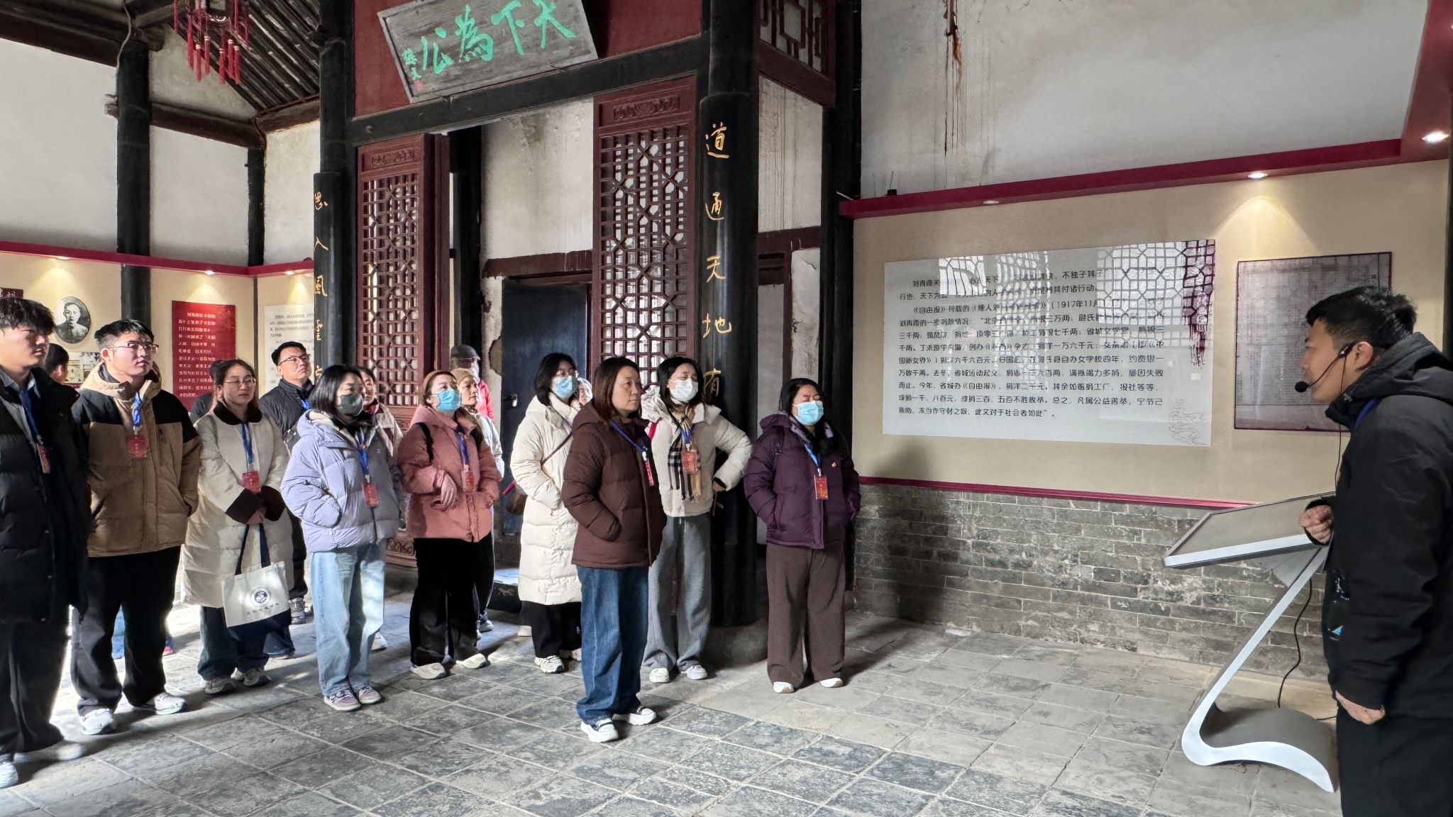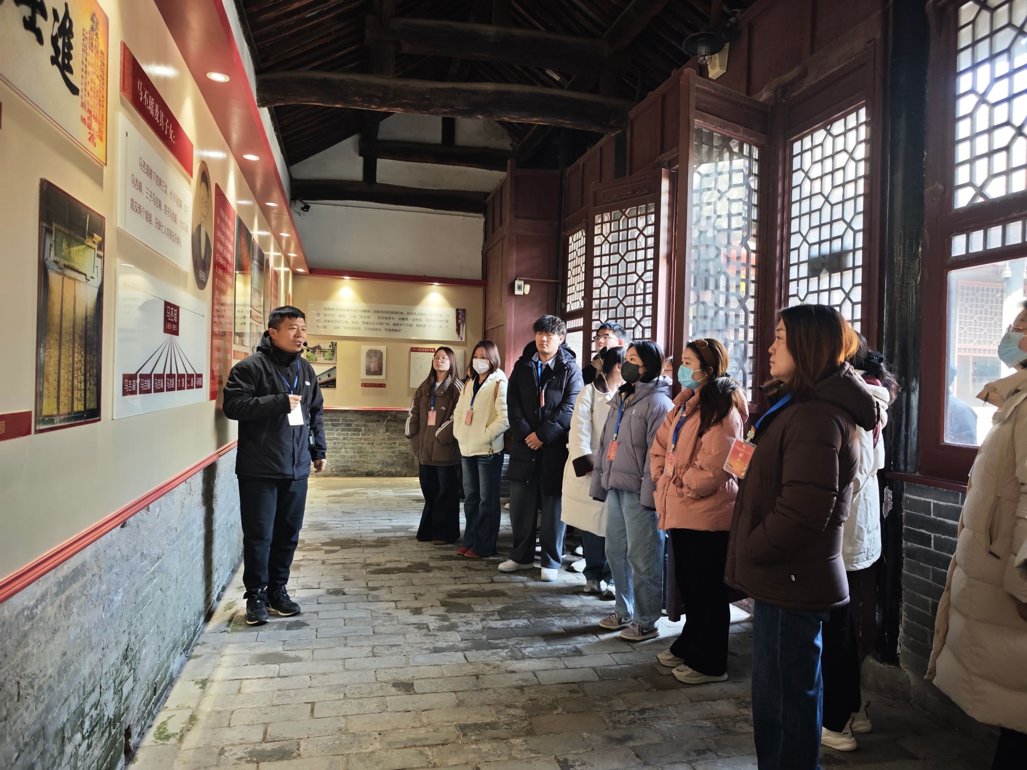 研学队伍首站来到河南省爱国主义教育示范基地—刘青霞故居纪念馆,师生们在古朴典雅的传统院落中,通过讲解员生动的叙述,深入了解了刘青霞女士从世家闺秀转变为倾资兴学、心系家国的“巾帼英雄”的非凡人生。她的无私奉献与高尚清廉品格,深深感染了在场师生。大家仔细观看历史文物、图文史料与复原场景,在沉浸式体验中感悟“清廉自守、胸怀天下”的精神传承。