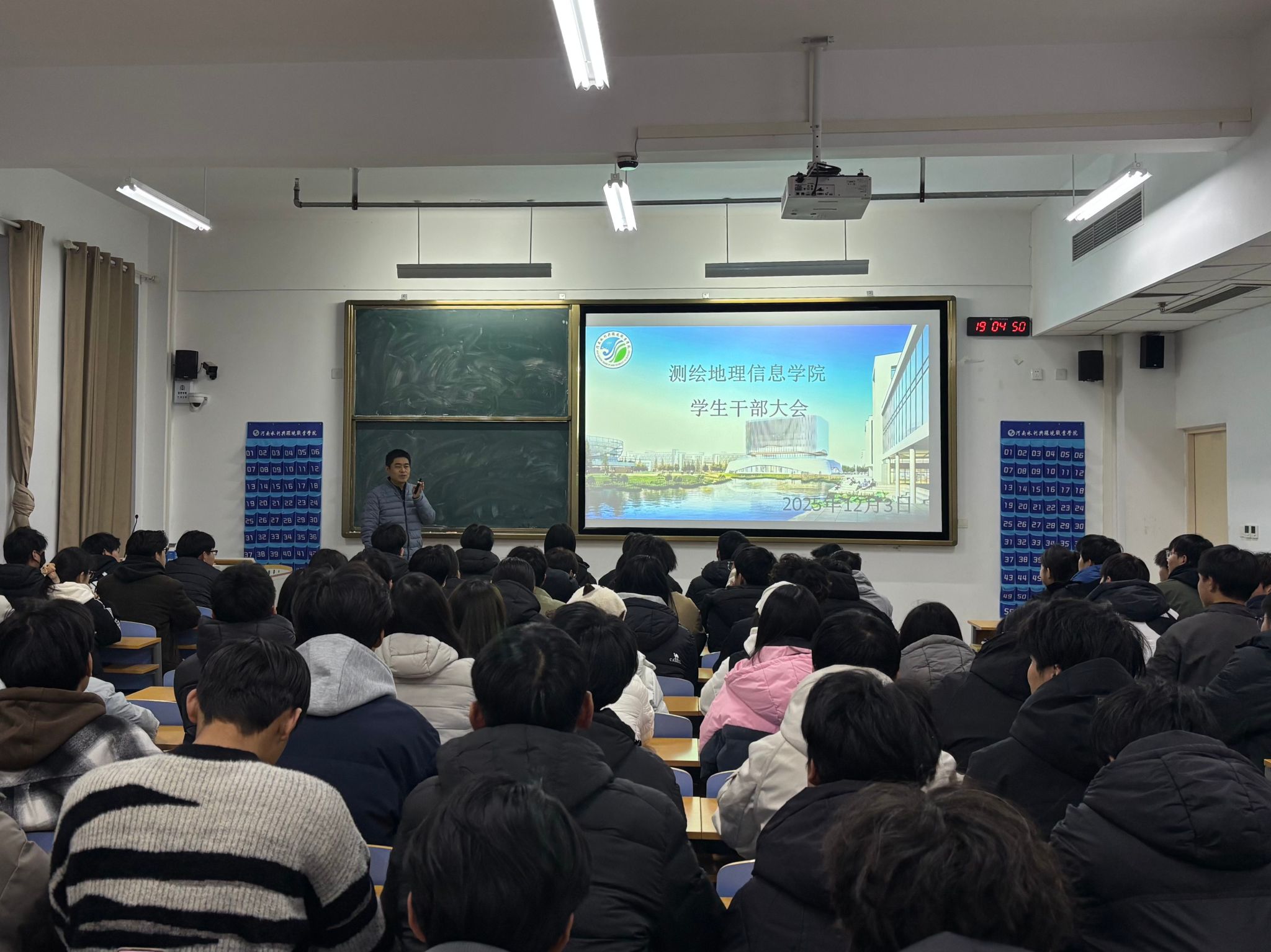 为全方位提升学生干部综合素质、明晰其职责使命,12 月 3 日,测绘地理信息学院精心组织召开学生干部培训大会。此次会议由学院党总支书记钟含主持,学院第一届学生干部、各班团支书及班长参加。