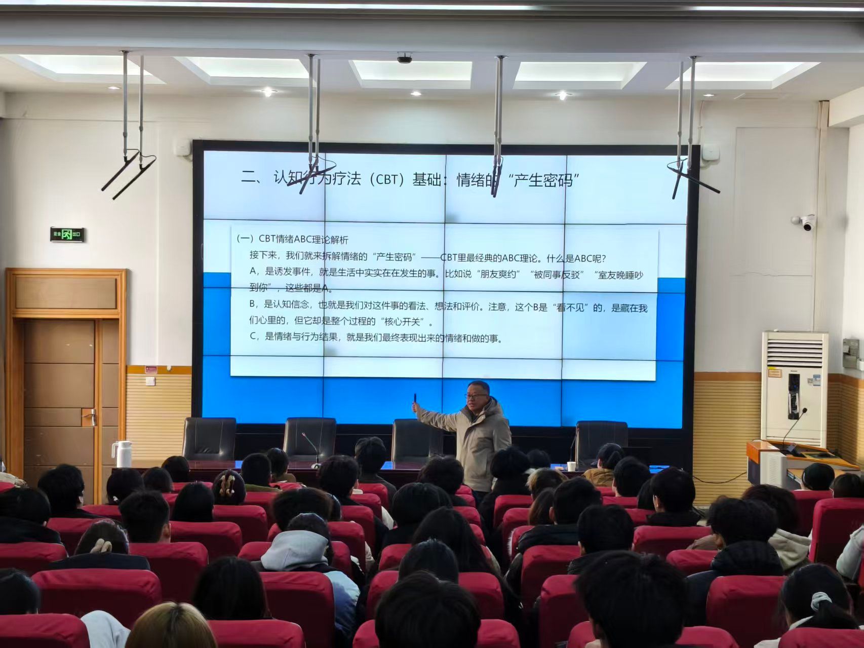 讲座上,杨伯箫以鲜活案例切入,深入剖析情绪与人际关系的内在联系,明确情绪管理对人际相处的关键影响。结合高职学生群体特点,他系统讲解认知行为疗法中的“情绪挑战四步法”与“情绪abc理论”,通过现场互动问答、情景模拟等形式,引导学生精准感知情绪、掌握科学的情绪调节方法。