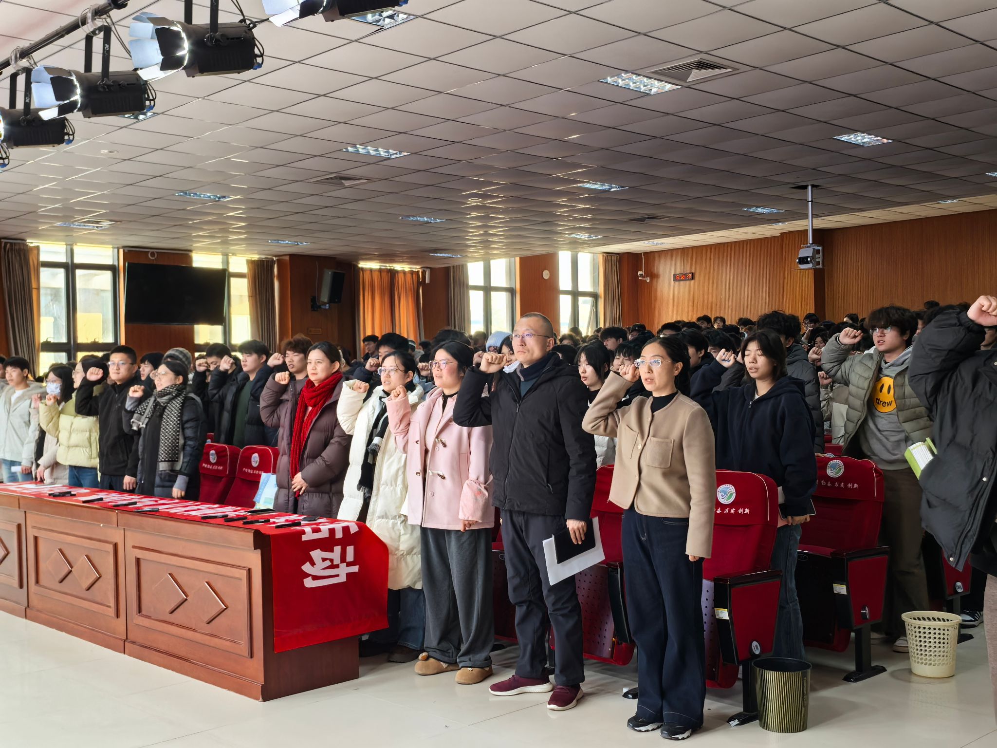 集体宣誓环节,全体学生庄严举起右拳,承诺自觉遵守考场规则,坚守诚信底线。宣誓声整齐划一,展现了土木学子践行诚信考试的决心。党总支书记李文君作总结讲话,强调诚信是大学生立身之本,寄语学子将诚信内化于心、外化于行,成长为德才兼备的栋梁之才。