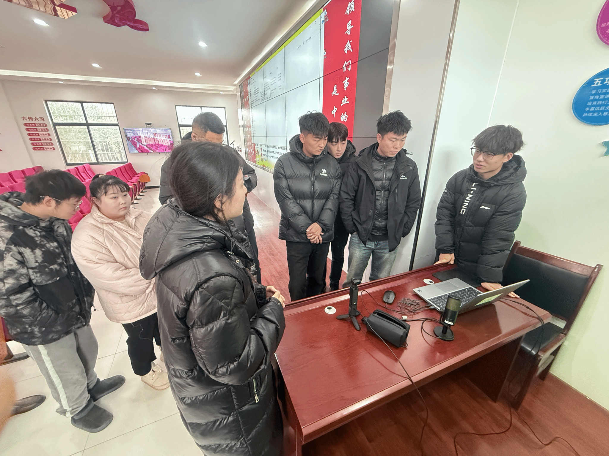 培训现场,张宝华介绍了学院办学特色、学科优势及服务地方经济发展的相关举措。24级跨境电子商务专业学生崔崇倩围绕主播职业素养、直播行业规范,结合农产品直播案例讲解带货必备能力与合规要点;同专业学生耿晨阳聚焦直播设备实操,从设备调试、镜头运用到场景搭建开展手把手教学,让村民快速掌握实操技巧。培训中村民学习热情高涨,主动参与实操演练,现场学习氛围浓厚。